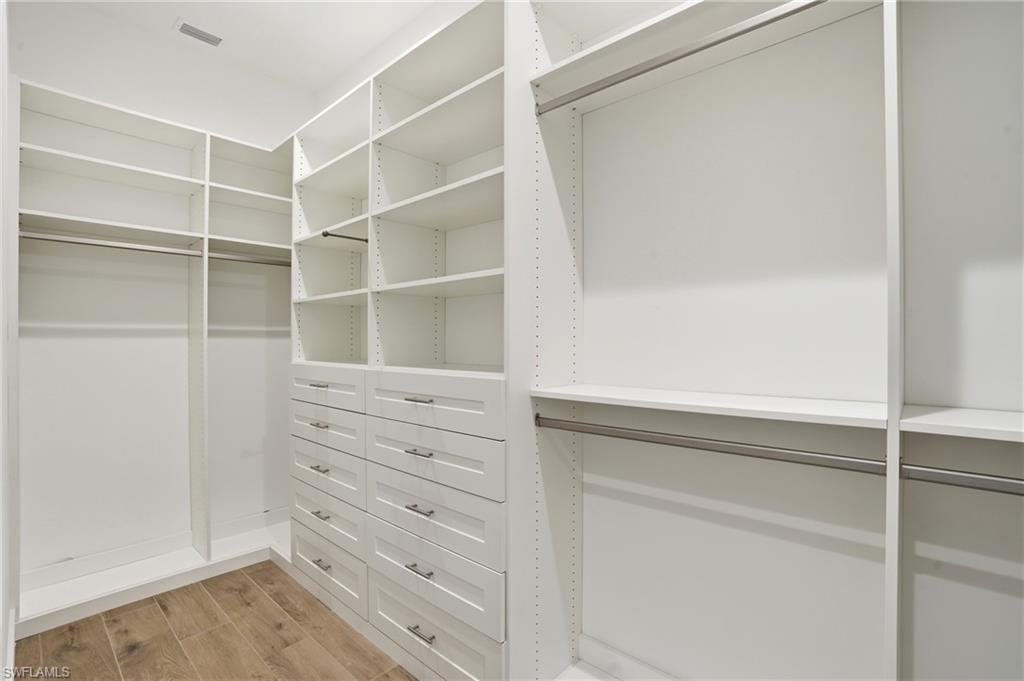 The first-floor primary suite offers direct lanai access, dual custom closets, a spa-inspired bath with quartz vanities and walk-in shower. Upstairs, you'll find two additional en-suite bedrooms and central loft that opens to a large balcony overlooking the golf course and lake - perfect for entertaining family and friends.