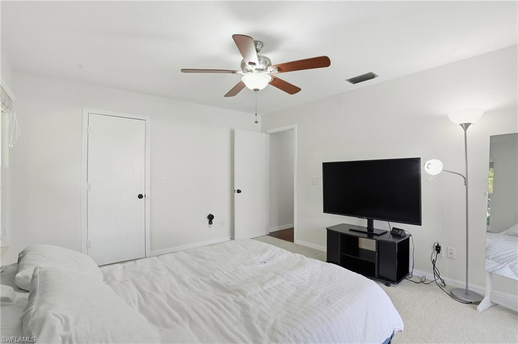 The updated kitchen features granite countertops, cherry wood custom soft-close cabinetry, an island, breakfast bar, and a brand-new refrigerator. The spacious primary suite overlooks the screened lanai and pool--equipped with a new filter--and includes an updated bathroom with dual sinks and a modern shower. The guest bath is also updated with granite and a tub/shower combo.
