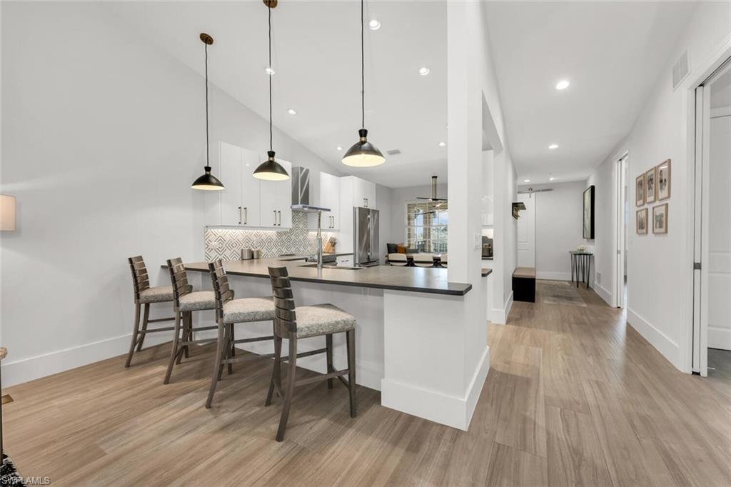 Inside, the 3-bedroom, 2-bath end unit layout showcases thoughtful redesigns, including refined doorways and selectively reimagined walls that enhance flow and create a more open, connected feel with lots of light and windows. Volume ceilings and an airy open-concept floor plan provide a sense of spaciousness, while a screened lanai invites you to relax and take in peaceful water views. The spacious primary suite offers a walk-in closet and spa-inspired bathroom, and a full-size laundry room adds convenience to everyday living.