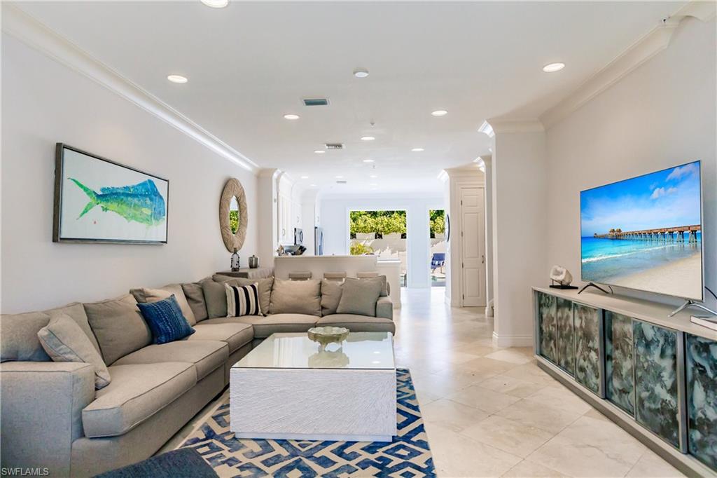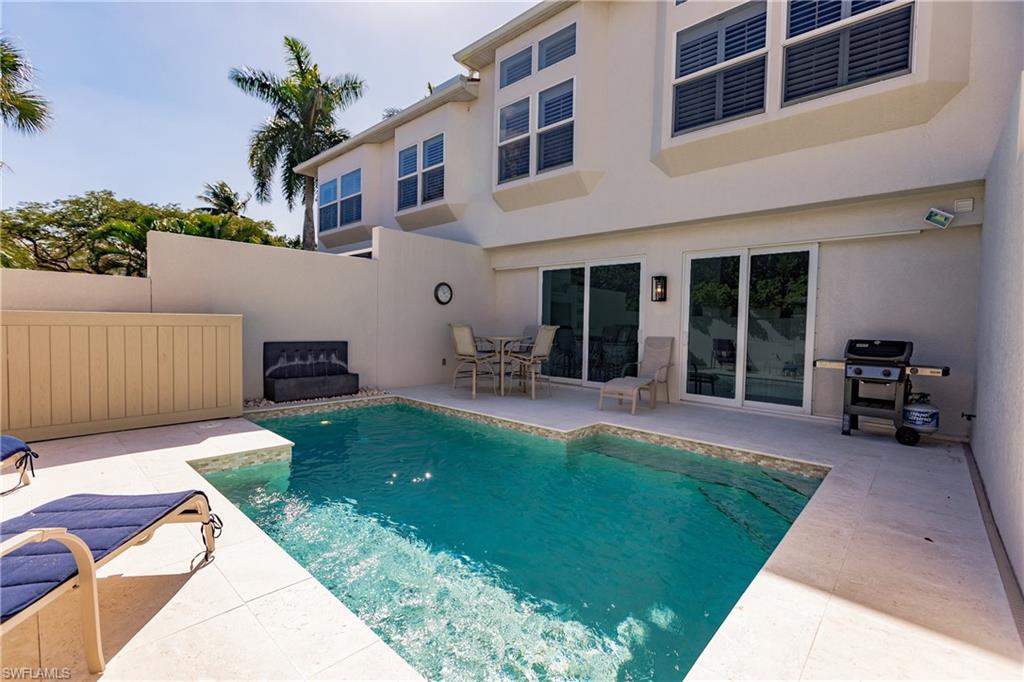 This elegantly remodeled two-story villa, perfectly positioned in the heart of Old Naples, offers an unmatched blend of sophistication and convenience. Situated just three blocks from the vibrant 5th Ave S, and a five-block stroll to the Gulf's pristine beaches, this 1,951 sq. ft., pet-friendly, residence is a true gem. Thoughtfully designed, featuring three bedrooms, three full baths, a flexible loft or den, and the convenience of a private one-car garage. No detail was overlooked in this open floor plan renovation. The lanai and pool area have been completely transformed with sleek travertine tile, a serene waterfall, and updated pool equipment, all seamlessly connected to the interior through new double sliding glass doors. The updated kitchen, dining, and living areas boast quartz countertops, striking tile and wood flooring, refined crown molding, and modern recessed lighting. Impact-resistant windows, a security system, and a freshly installed roof ensure both style and peace of mind. This turnkey villa, part of an exclusive four-unit community, offers a rare opportunity to immerse yourself in the luxurious Old Naples lifestyle. Enjoy world-class dining, boutique shopping, and sun-soaked days by the pool or the Gulf --all just steps from your front door. No water intrusion during any of the tropical storms.