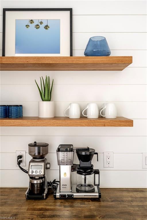 Gas cooktop, quartz island, custom cabinetry, walk-in pantry with built-ins, and a coffee and beverage station designed for everyday living and entertaining.