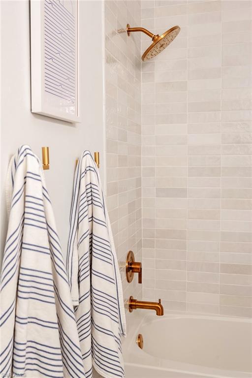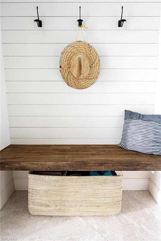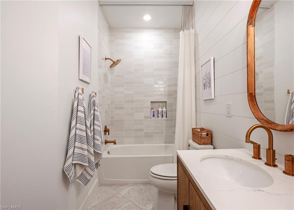Guest bathroom includes a soaking tub, upgraded fixtures, and shiplap accents. Custom closets in all bedrooms enhance storage and organization. The laundry room offers cabinetry, folding counter, and sink, along with a practical mudroom for daily use.