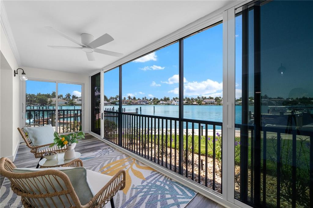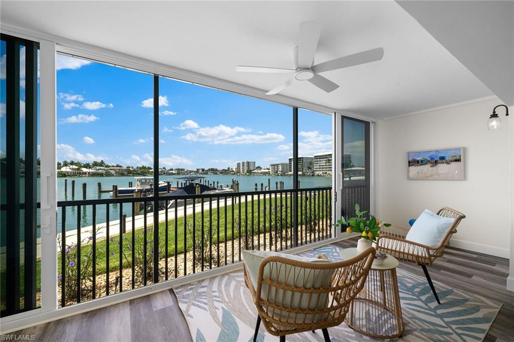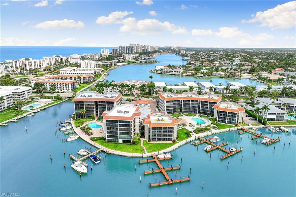 Boat Slip is Deeded with unit and is directly out your front door. Completely remodeled 1,400-plus-square-foot condominium in a desired location! So convenient and peaceful this home feels private and lives like a single-family home. Watch your boat from your living room, kitchen and lanai with access to the Gulf of Mexico through Doctors Pass, one of Naples most direct routes to the Gulf. Impressive panoramic views of the bay leading to the Gulf. In 2023-2024 new kitchen, new baths, new floorings, light fixtures, appliances, windows, doors and water heater. Community has new elevators 2024, new roofs 2025, new seawall 2021, new pool and outdoor furniture 2025, exterior paint 2020 and new roofs on all buildings completed January 2025. Furnished with new furniture and accessories. Boat slip can accommodate up to a 38-foot vessel. Boat slips in the area going for $200,000-plus in this ZIP code and this one includes slip with the condominium. Privately situated, this residence has parking and a storage unit near it. Venetian Village and the beautiful beaches are blocks away. Live a healthy life swimming, boating or relaxing by the gorgeous bayside pool. The private Moorings resident beach park is available for membership, and the Moorings CC is around the corner for golfers. Residents of CCI appreciate their neighbors, well-managed association in addition to weekly chickee parties. Live the Naples life in the heart of the Moorings just two blocks to the Gulf.