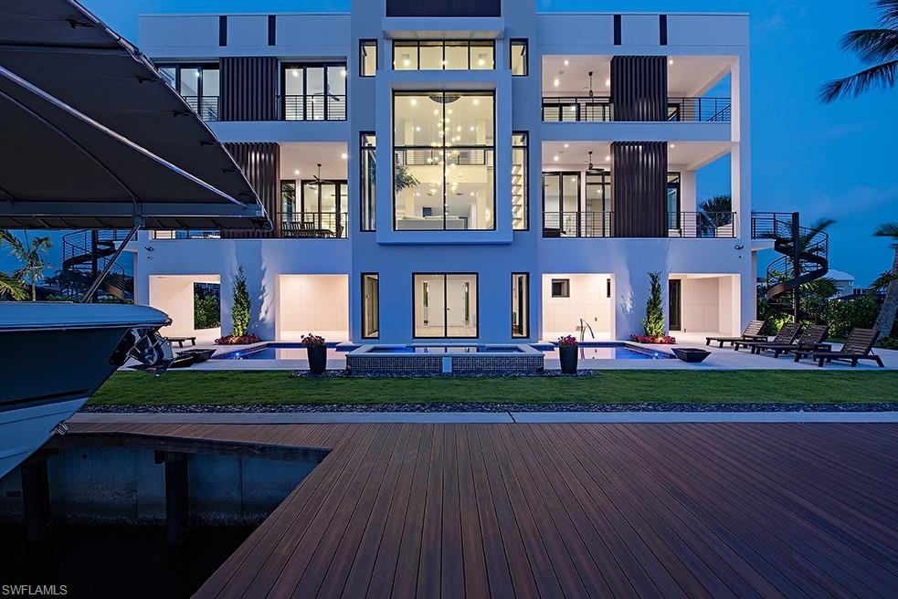Introducing a landmark property in one of Naples' most coveted boating communities, 348 Seagull Avenue redefines modern coastal luxury. Perfectly positioned at the tip of a quiet cul-de-sac in the exclusive Conners enclave of Vanderbilt Beach, this architectural masterpiece by Kriel Dillworth Design commands a pie-shaped lot with wide, unobstructed canal views and coveted western exposure, the ultimate vantage point for Naples' legendary sunsets.