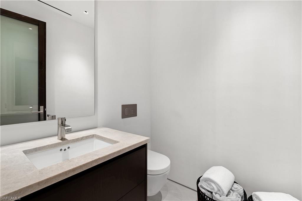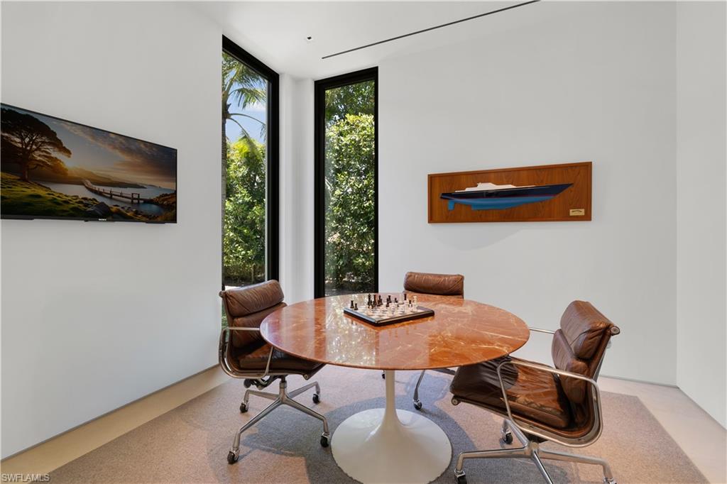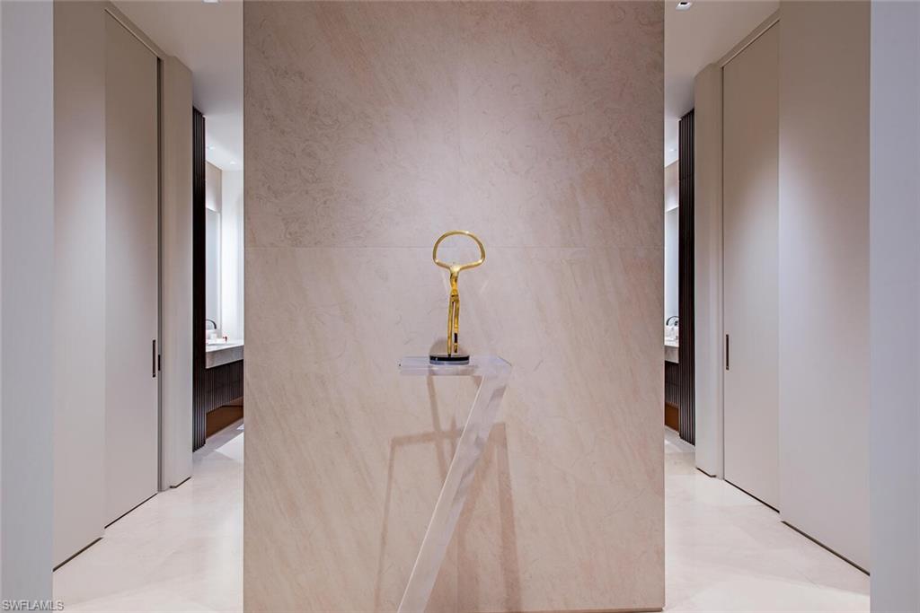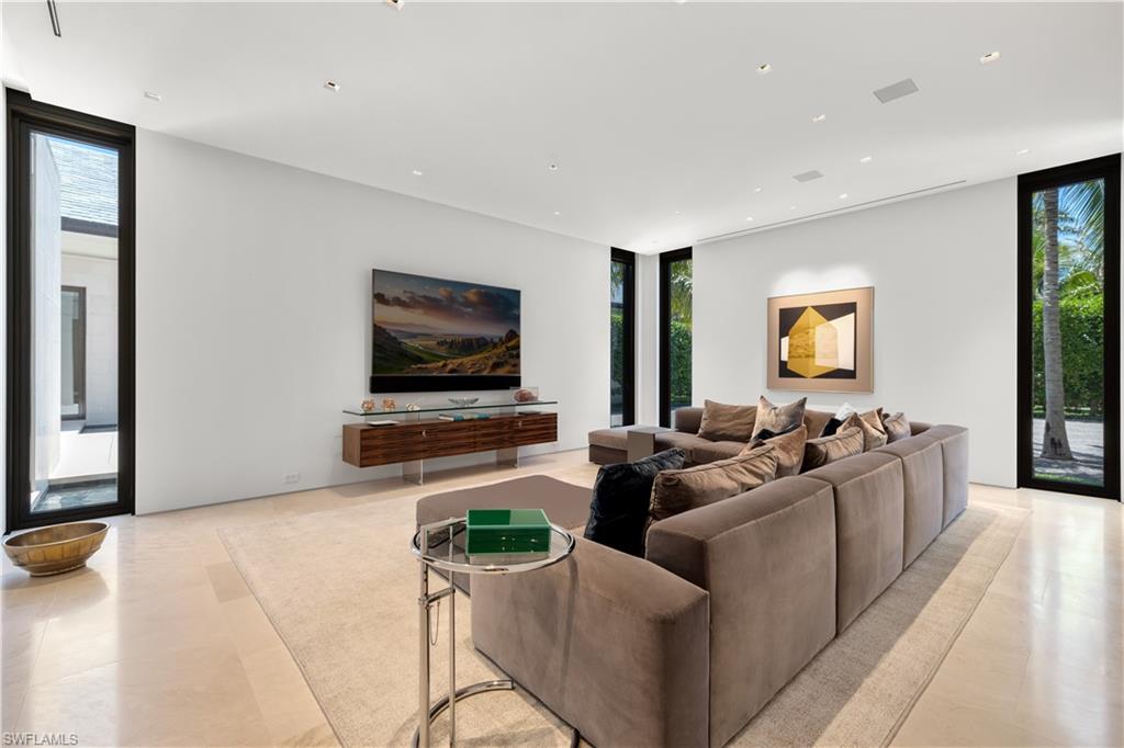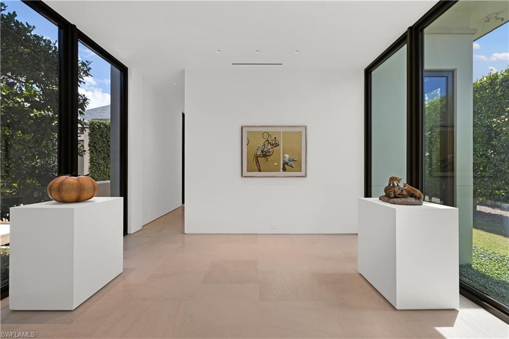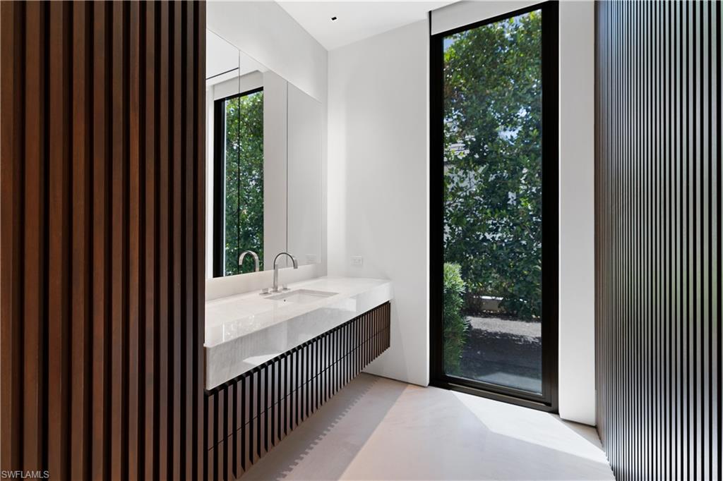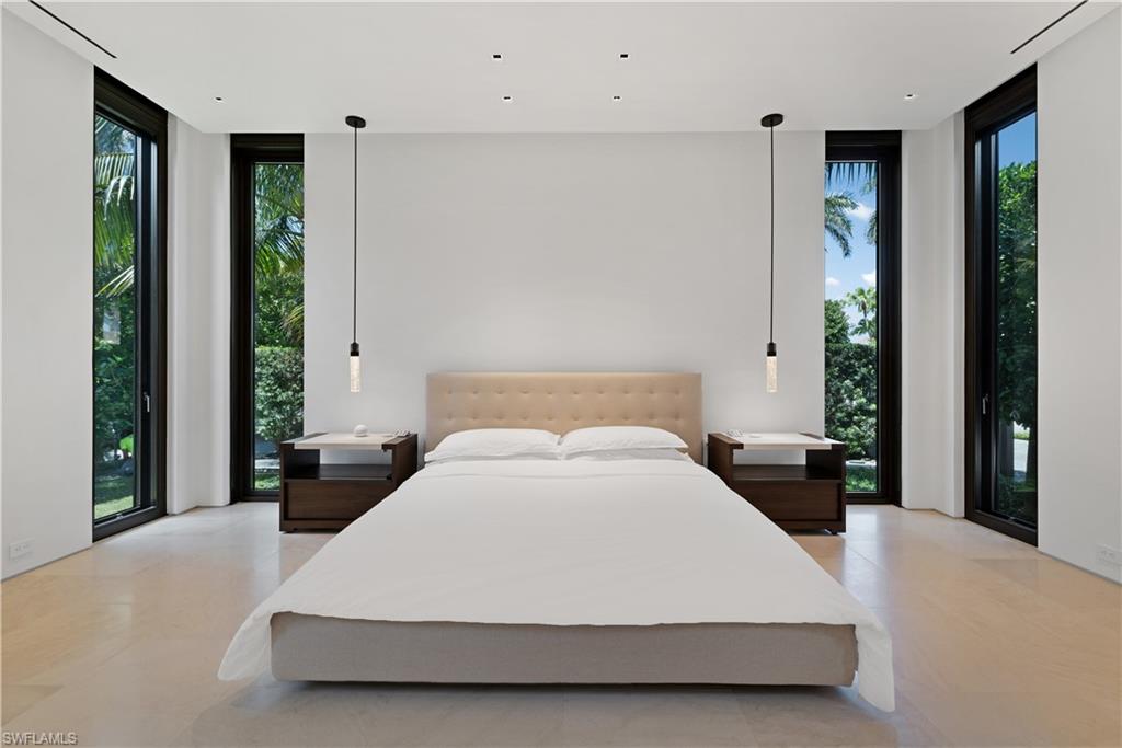 Welcome to The Sanctuary, a bespoke architectural masterpiece by Mark J. Leonardi, brought to life by A. Vernon Allen Builders. This nearly 8,600-square-foot waterfront estate showcases exceptional detail and craftsmanship, from its slate roof and copper gutters to natural stone accents and exquisite landscaping. Passing through the gates, reflection pools frame the forecourt, setting the tone for a serene experience. Inside, gentle light filters through vertical Tischler windows onto Portuguese limestone floors, illuminating curated interior vignettes. Designed as seven pavilions connected by glass-lined passageways, the home flows with discovery and intention. Floating walls eliminate the need for baseboards, enhancing a sense of weightlessness and architectural clarity. The layout weaves around private gardens, water features, and tranquil courtyards across a spacious lot and a half site. Each transition, from stone to glass, interior to exterior, is seamless and mindful. Clean lines, hidden storage, and a soft material palette create a calm, spa-like ambiance. Whether relaxing beside the palm-framed pool or walking the meditative halls, The Sanctuary is more than a home, it's a retreat for the senses, designed to center, soothe, and restore. Eligible for immediate Port Royal Club membership to enjoy what will be the premier beach club in America.