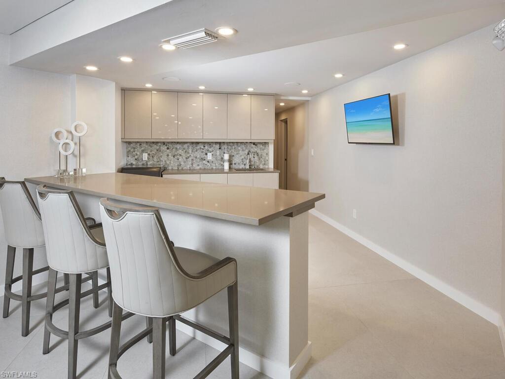 A sweeping panorama of the Gulf sets the tone at Horizon House, where convenience meets effortless coastal elegance. Just under 1,800 square feet, this refined yet relaxed residence opens with an elegant foyer to a sun-filled living room framed by floor-to-ceiling sliders and a covered balcony--an invitation to savor serene sunsets and the hush of the waves. The kitchen flows seamlessly to the dining area so Gulf views accompany every meal, while the private owner's suite features wide water vistas, a walk-in closet, and an en suite bath. A second bedroom offers welcomed privacy for guests, and the covered balcony becomes an outdoor salon for morning coffee or sunset cocktails.Set upon the sugar-sand of Park Shore Beach and moments from Venetian Village, Horizon House pairs exclusivity with ease--think convenient parking, a sparkling pool with generous patio, community room, and fitness center. An added note of confidence: no water intrusion during recent tropical storms.