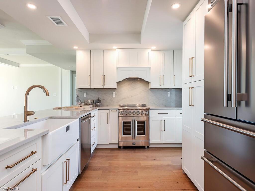 Just completed residing along the Venetian bay in the highly desirable Park Shore community this top floor, end residence has been thoughtfully redesigned as an 2 bedroom with larger living area space which can be easily turned back to a 3 bedroom if desired and curated with high end appointments throughout! From European wide plank white oak floors, all marble bathrooms, high end appliances, quartzite countertops, a plethora of fine detailed woodwork throughout, beautiful ceiling details, it is truly ready for your personal final touches to make it your very own! The residence as mentioned above is currently designed as a 2 bedroom but the 3rd bedroom can be added back if one needs, it also may come furnished if one chooses to have done for them, and can also be purchased with a boat slip to go with!!! The location is fabululous for boaters, beach goers, and those looking to enjoy the true Naples lifestyle. You have availability to join the Park Shore private, guarded, gated beach access for Park Shore residents exclusively and and just across the Park Shore bridge to the Venetian Village for fine and casual dining and your shopping pleasure! Park Shore is the most centrally located area west of US-41 between the Ritz Carlton and the Iconic Downtown Old Naples. If one chooses to have their own slip and boat you are to Drs Pass and out to the Gulf within 15 minutes! There is no better time than now to enjoy the wonderful lifestyle this residence affords you!