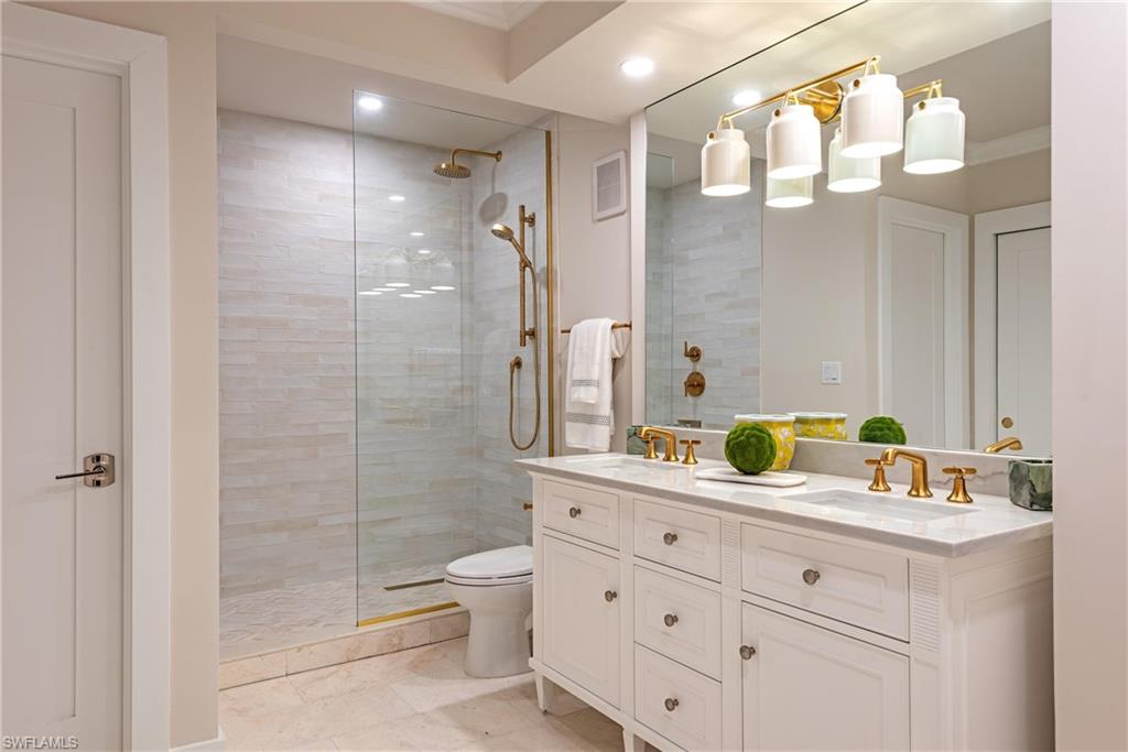 Just completed residing along the Venetian bay in the highly desirable Park Shore community this top floor, end residence has been thoughtfully redesigned as a 2 bedroom with a larger living area space which can be easily turned back to a 3 bedroom if desired and curated with high end appointments and furnishings throughout! From European wide plank white oak floors, all marble bathrooms, high end appliances, quartzite countertops, a plethora of fine detailed woodwork throughout, along with beautiful ceiling details and endless gorgeous sunsets paralleled with the location it is a wonderful seasonal retreat! The location is fabulous for boaters, beach goers, and those looking to enjoy the true Naples lifestyle. You have the ability to join the Park Shore private, guarded, gated beach access for Park Shore residents exclusively and and just across the Park Shore bridge to the Venetian Village for fine and casual dining and your shopping pleasure! Park Shore is the most centrally located area west of US-41 between the Ritz Carlton and the Iconic Downtown Old Naples. There is no better time than now to enjoy the wonderful lifestyle this residence affords you!