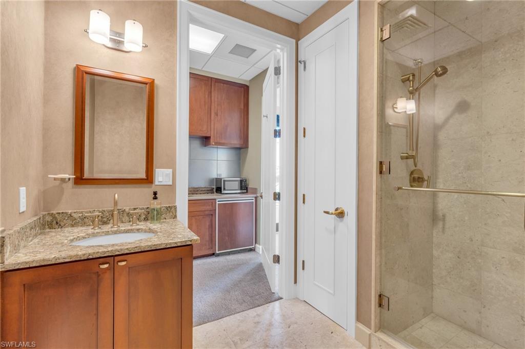 Experience the epitome of downtown Naples living in this exquisite Penthouse, where sophistication meets convenience. Just steps from the vibrant 5th Avenue and a short walk to the stunning beaches, this property offers the perfect blend of luxury and location, available for both seasonal and annual rental. Spanning an entire floor, this penthouse welcomes you with a 2,000-square-foot wrap-around balcony, offering breathtaking city views that showcase the pulse of Naples from sunrise to sunset. The main residence boasts two spacious bedrooms, a den, and 2.5 bathrooms. In the master suite, you'll find a king-sized bed, walk-in closet, and a bathroom that invites relaxation with its soaking tub and large walk-in shower. Natural light floods the space, creating a serene retreat for unwinding after a day exploring the city. Guests are treated to their own luxurious suite, complete with a king-sized bed, walk-in closet, and a private bathroom featuring a sleek, modern shower. The bright, airy kitchen, outfitted with stainless steel appliances, a breakfast bar, and a large dining area, makes cooking and entertaining a delight. For those working remotely, the dedicated office/den area provides a peaceful, functional space with city views. For additional privacy, a separate guest residence offers a living room with a sleeper sofa, kitchenette, and a comfortable king-sized bedroom with a full bathroom--ideal for visitors or extended stays. Just outside your door, the vibrant energy of Naples awaits. Walk to the beach, enjoy world-class dining along 5th Avenue, explore coffee shops, parks, and the thriving cultural scene. Whether you're enjoying a quiet evening at home or immersing yourself in the excitement of the city, this penthouse delivers an unmatched lifestyle in one of the most desirable locations in Naples. Your downtown Naples penthouse awaits--offering the perfect balance of luxury, comfort, and convenience.