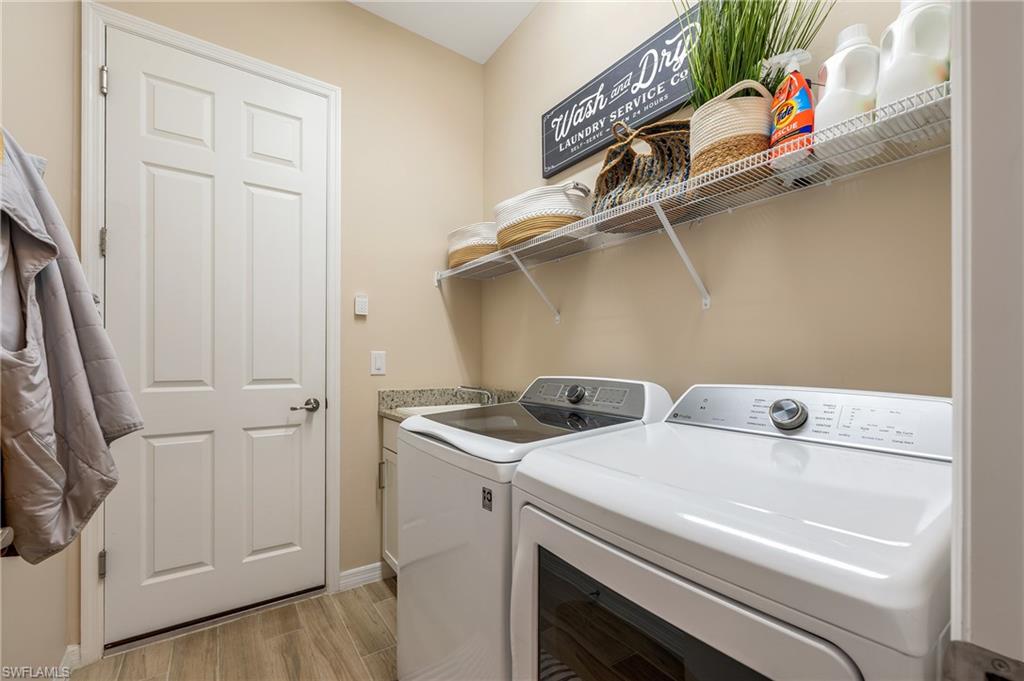 Step outside to your private backyard oasis--the perfect yard for pets, with preserve views, privacy, and desirable northern exposure. Enjoy over $125,000 in outdoor enhancements, including a custom saltwater pool by Jackson Pools ($100,000), upgraded landscaping, a hurricane screen-enclosed lanai, and a beautiful cedar ceiling. An expanded driveway with a side house ledge and a whole-home water filtration system round out the exterior upgrades.