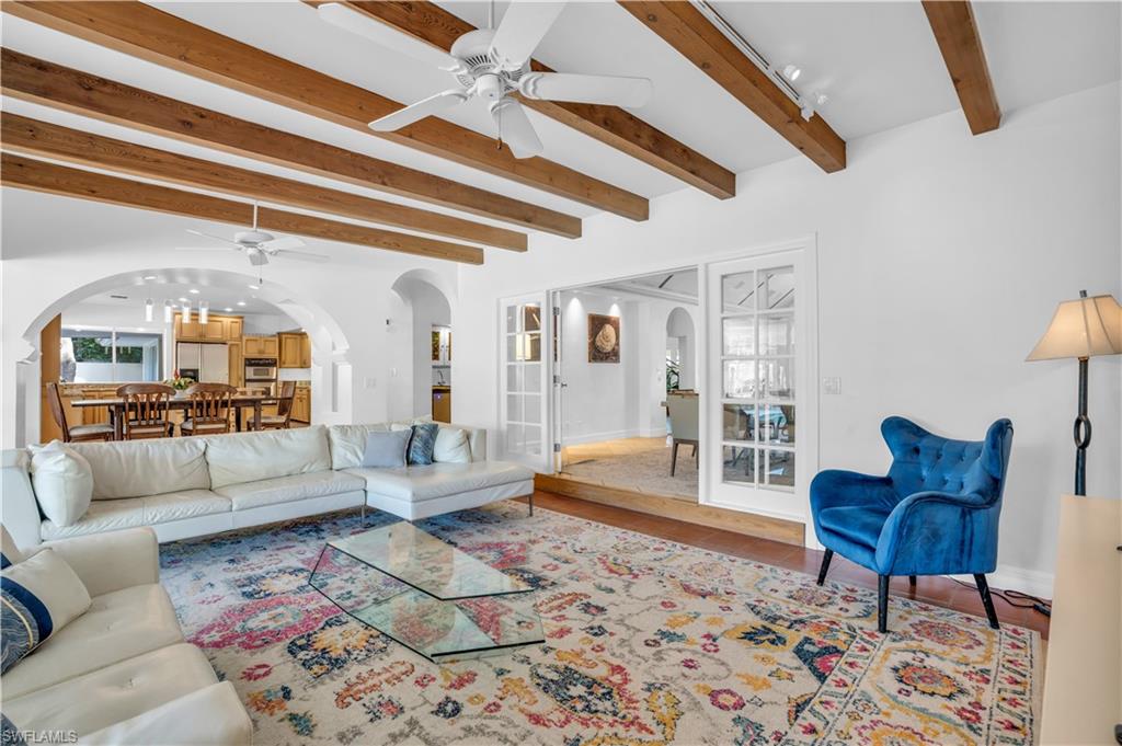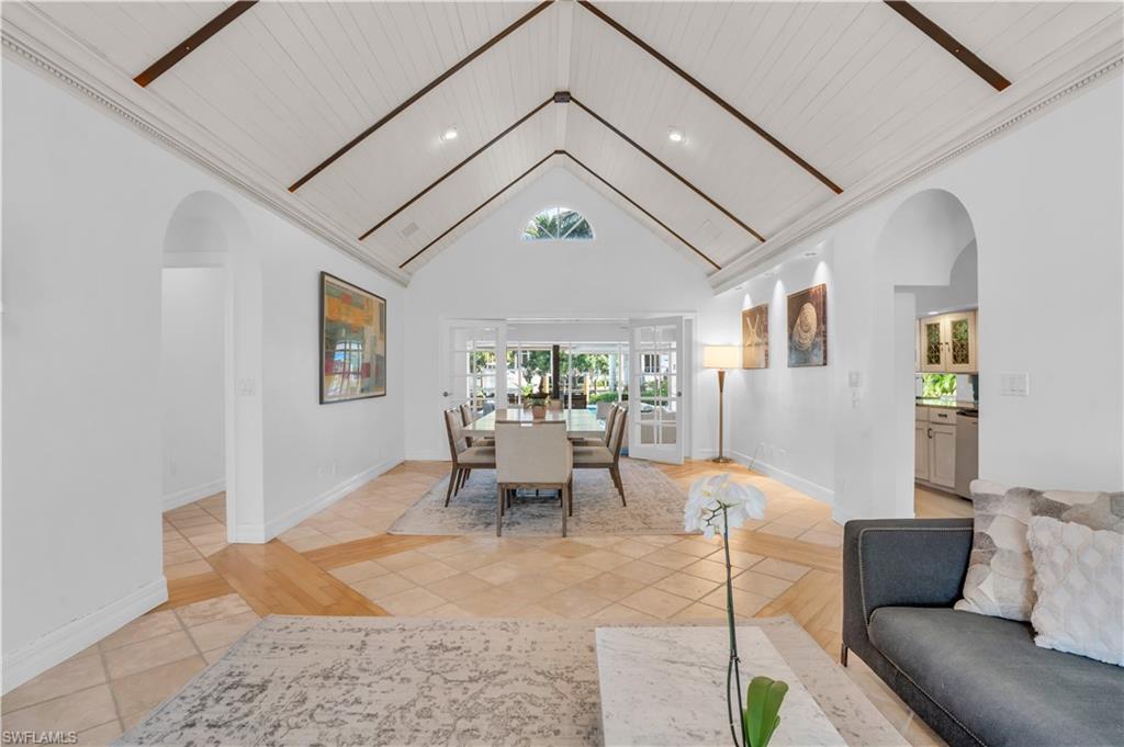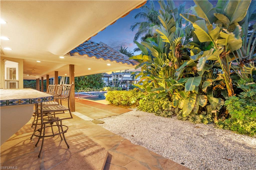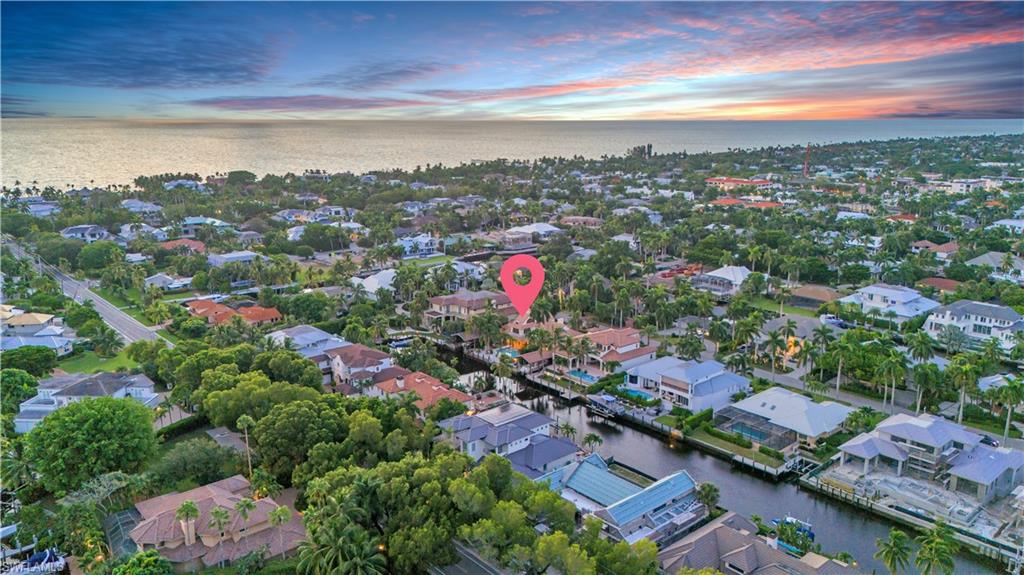 Introducing an exceptional waterfront property in the highly sought-after Aqualane Shores neighborhood. This home offers 4 bedrooms, including an in-law suite, and 3 full baths plus 1 half bath, spread across just under 4,000 sq ft of refined living space. Set on a .32-acre lot, this residence features Southern exposure and captivating, private canal views. The property showcases a boaters dream, and rarely available covered boat house with a boat lift. The lushly landscaped yard surrounds an expansive pool and spa, complemented by seamless indoor-outdoor living with spacious dining, sunning, and entertainment areas. Step inside to discover a blend of sophistication and comfort with natural light pouring in from every angle. Adorned with beamed cathedral ceilings, and a gas fireplace, the interior boasts sleek countertops, stainless steel appliances with gas cooking, and a unique stained glass wine closet. Located just four blocks from Naples renowned beaches and walking distance to the famous dining, shopping, and entertainment of 3rd St S and 5th Ave S, this property offers the dream Florida lifestyle. In a matter of minutes you are taken from your private boat dock to the Gulf of Mexico.