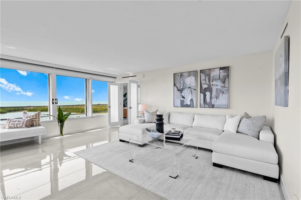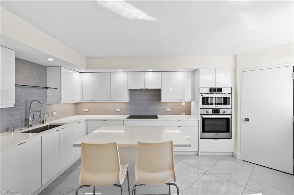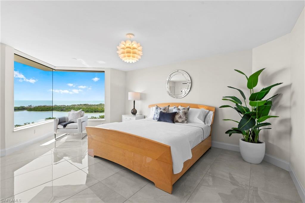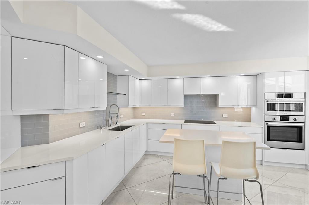 Experience the pinnacle of coastal living in this stunning, chic 2-bedroom, 2.5-bath condo located in The Heron at Pelican Bay. Offering panoramic Gulf and Bay views, this residence is the ultimate retreat for those who crave breathtaking sunsets and unparalleled luxury. Extensively renovated in 2019, it boasts a modern, sophisticated aesthetic with sleek, high-gloss European-style cabinetry, quartz countertops, Bosch appliances, and a central island perfect for casual dining. The contemporary kitchen is complemented by a subway tile backsplash, while oversized porcelain tile flooring and a soft white color palette create a sense of calm and elegance throughout the home. The floor-to-ceiling windows flood the space with natural light and provide an ever-changing masterpiece of water views, making this home a true showstopper. Whether you're hosting guests or enjoying a quiet evening, this condo offers the perfect backdrop for any occasion. Situated in the boutique, pet-friendly building of The Heron--known for its iconic architectural style--this residence offers exclusivity with only 40 units. Building amenities include two guest suites, on-site management, a resort-style pool and spa, and a private gym. In addition to this luxurious living space, you'll enjoy access to Pelican Bay's world-class amenities, including two private beach pavilions with restaurants, miles of walking paths, tennis courts, pickleball, and endless fitness and wellness activities. You'll also be just moments away from cultural experiences at Artis-Naples and the luxury shopping and dining at Waterside Shops and Mercato. Don't miss this opportunity to embrace top-tier living in one of Naples' most sought-after communities!