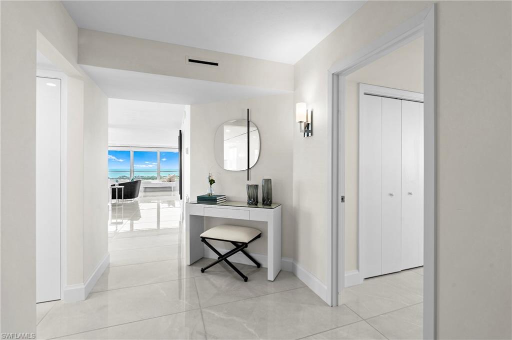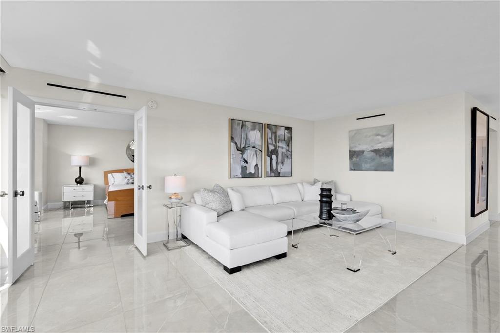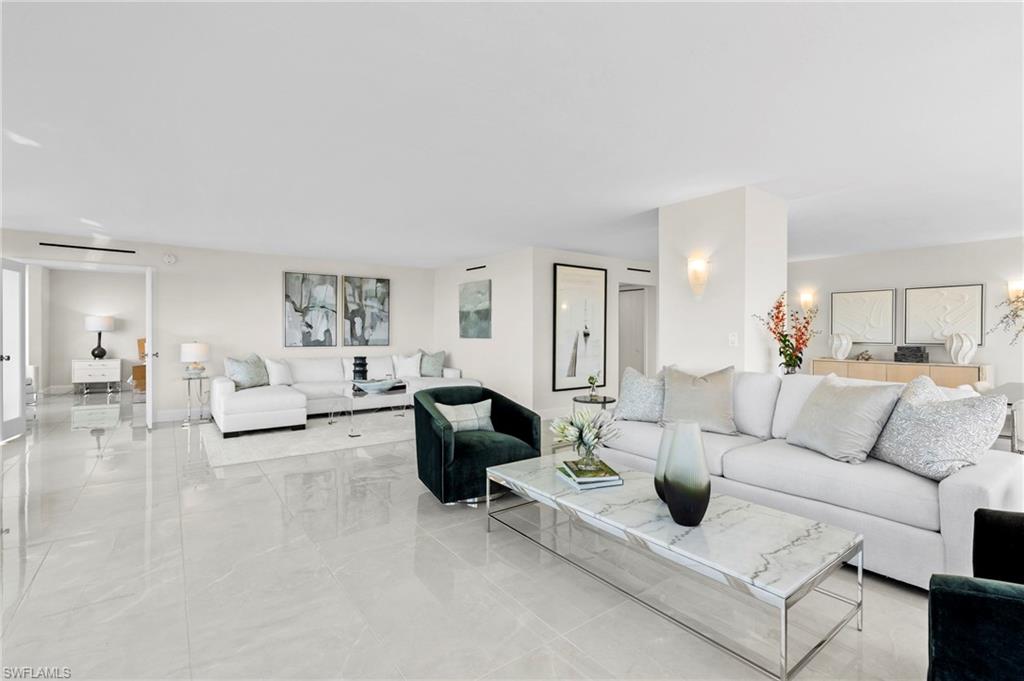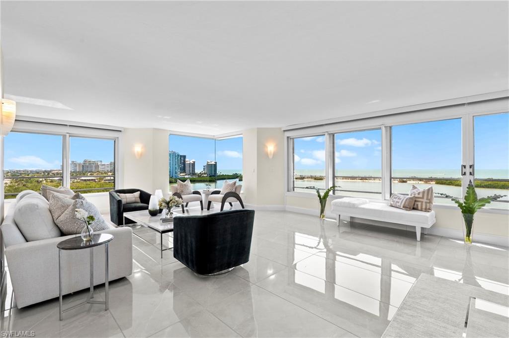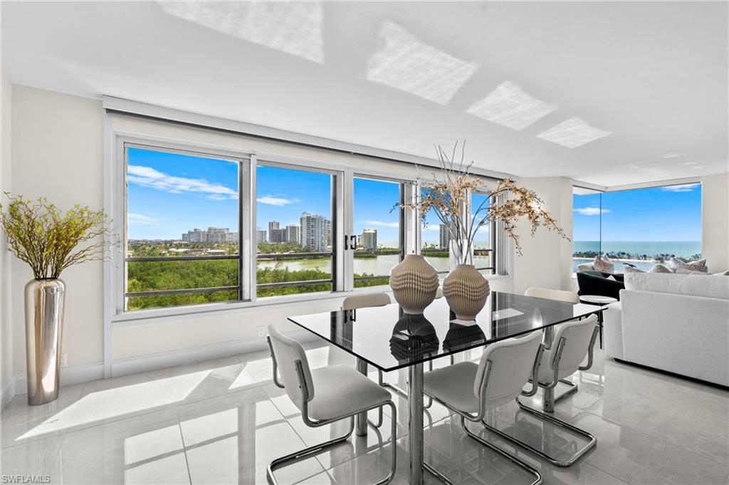 Experience the pinnacle of coastal living in this stunning, chic 2-bedroom, 2.5-bath condo located in The Heron at Pelican Bay. Offering panoramic Gulf and Bay views, this residence is the ultimate retreat for those who crave breathtaking sunsets and unparalleled luxury. Extensively renovated in 2019, it boasts a modern, sophisticated aesthetic with sleek, high-gloss European-style cabinetry, quartz countertops, Bosch appliances, and a central island perfect for casual dining. The contemporary kitchen is complemented by a subway tile backsplash, while oversized porcelain tile flooring and a soft white color palette create a sense of calm and elegance throughout the home. The floor-to-ceiling windows flood the space with natural light and provide an ever-changing masterpiece of water views, making this home a true showstopper. Whether you're hosting guests or enjoying a quiet evening, this condo offers the perfect backdrop for any occasion. Situated in the boutique, pet-friendly building of The Heron--known for its iconic architectural style--this residence offers exclusivity with only 40 units. Building amenities include two guest suites, on-site management, a resort-style pool and spa, and a private gym. In addition to this luxurious living space, you'll enjoy access to Pelican Bay's world-class amenities, including two private beach pavilions with restaurants, miles of walking paths, tennis courts, pickleball, and endless fitness and wellness activities. You'll also be just moments away from cultural experiences at Artis-Naples and the luxury shopping and dining at Waterside Shops and Mercato. Don't miss this opportunity to embrace top-tier living in one of Naples' most sought-after communities!