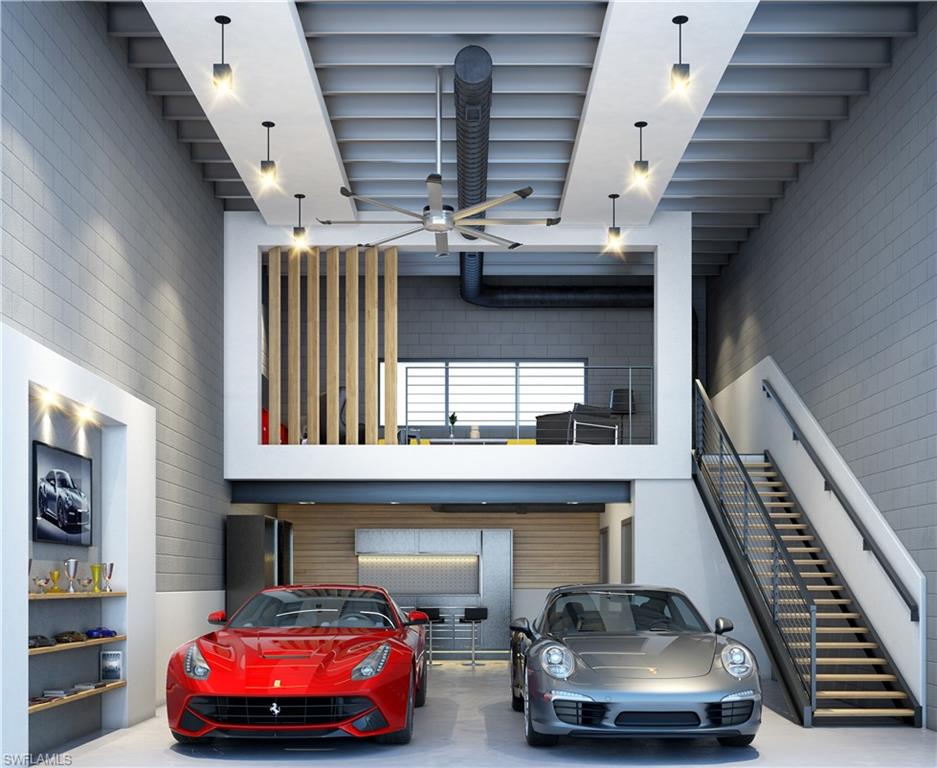 For Sale Unit 7. Redline Auto Suites is a distinguished automobile storage facility designed for owners who have a passion for the car-culture lifestyle. The buildings are designed to reflect the attention to scale, proportion, and detail emblematic of the prized automobiles contained within. The facility contains 18 private auto suites with approximately 1,000 square feet of floor area with an additional optional 330 square feet of loft space within the unit. The suites are equipped with 16 ft. wide x 14 ft. high roll-up garage doors and laminated glass windows which are both Florida Building Code compliant for hurricane wind pressures and large-missile impact for wind-borne debris. The buildings are constructed with concrete block exterior and interior walls with a steel Purlin roof system. Individual suites are shell spaces set up for a complete interior customization by the owner and contain standard utilities such as a plumbed toilet room, HVAC system with an air-handler closet, and structural provisions for a mezzanine and car lift racks. Redline offers an exclusive Club Room amenity which spans the entire auto court below inspired by a motor speedway grandstand club suite.