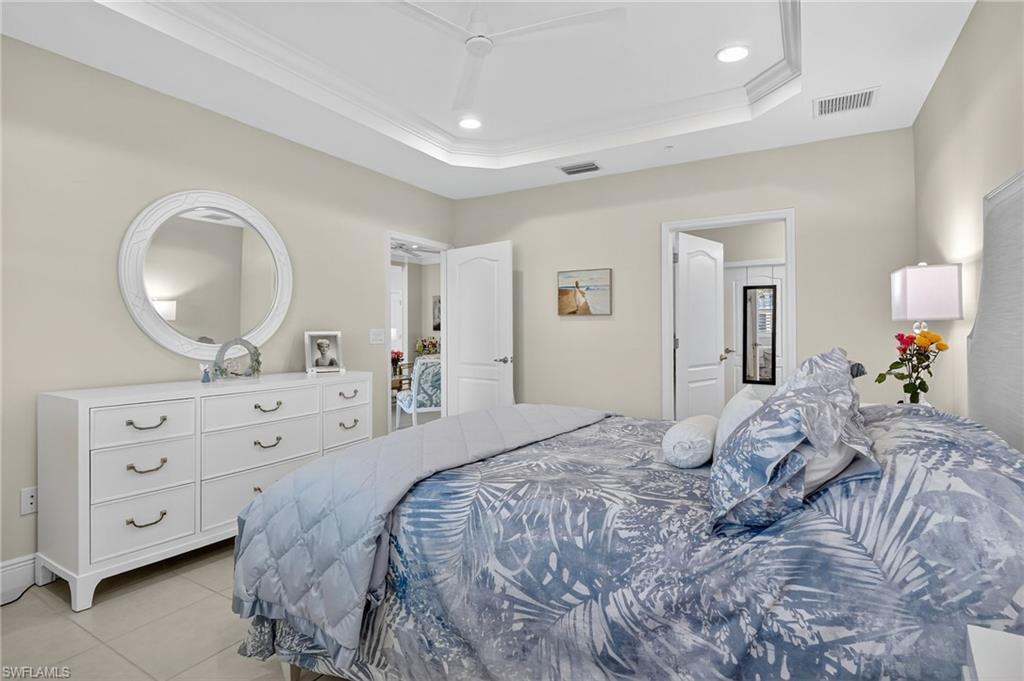 The spacious primary suite boasts a massive walk-in closet, a large walk-in shower, and dual vanities. A wide screened lanai with roll-up sunshades, newly installed tile and upgraded ventilation fans provides the perfect spot to relax while enjoying tranquil views.